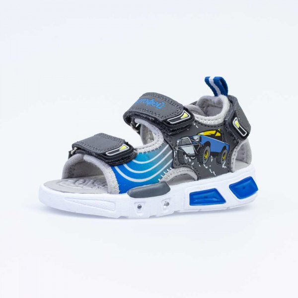 Туфли летние пляжные изготовлены из текстиля и искусственной кожи, обеспечивающих комфорт в использовании. Сандали легко моются и быстро сохнут . Два ремешка на липучках обеспечивают плотное прилегание обуви по ноге. За счет липучки в носочной части можно регулировать высоту подъема.